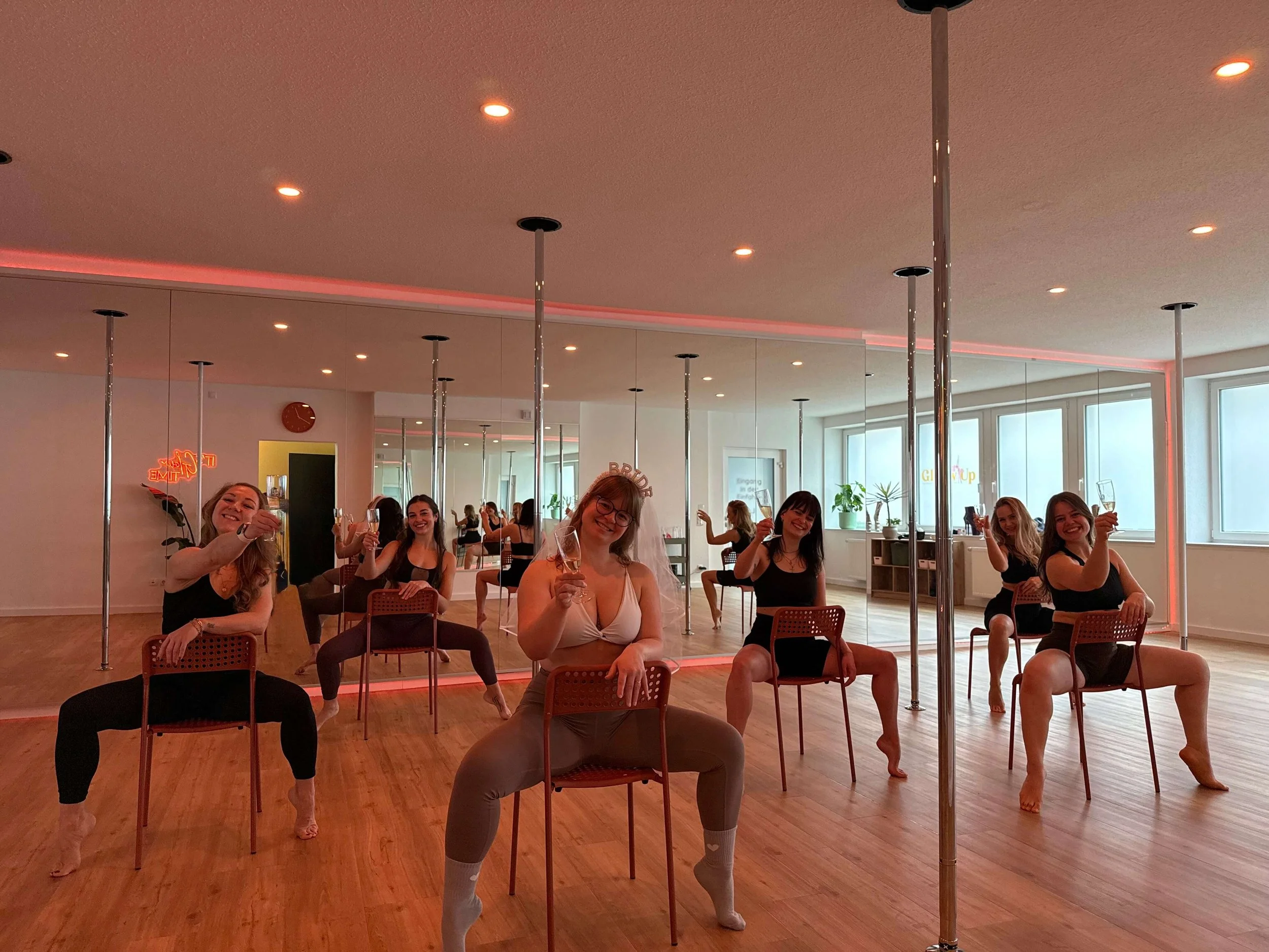 Jede Party wird ganz individuell nach Euren Wünschen gestaltet. In einem kurzen Vorgespräch besprechen wir, welche Stile, Tricks oder Choreos perfekt zu Eurer Gruppe passen, damit Ihr ein Erlebnis habt, das nur Euch gehört. Ob Pole Dance, Chair Dance oder Floorwork – wir bringen Euch gemeinsam ins Schwitzen, Lachen und Strahlen. Schwangere oder verletzte Teilnehmer:innen sind herzlich eingeladen, zuzuschauen und die Vibes mitzuerleben.